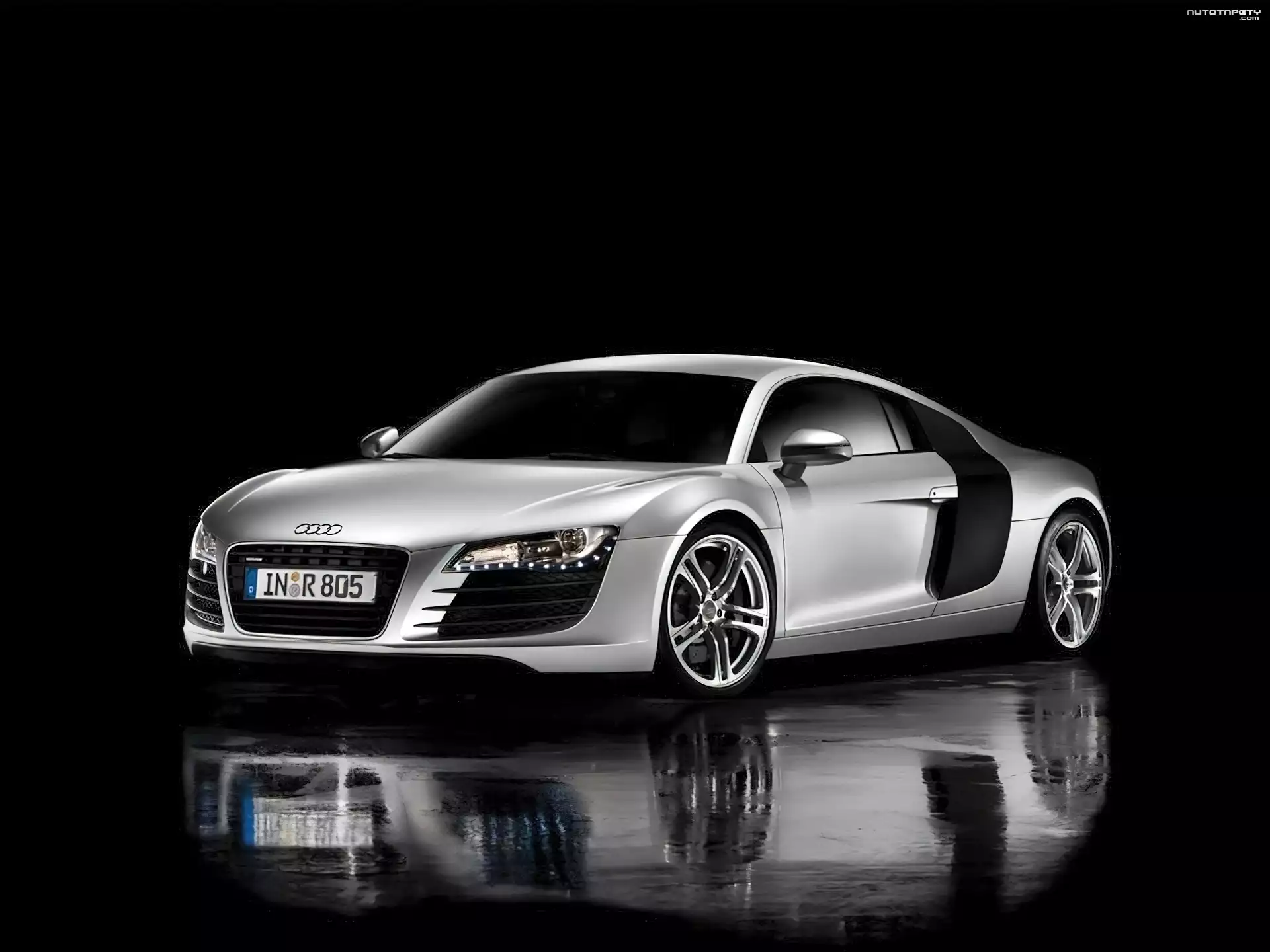 Auto Audi R8, Mokry, Asfalt, Odbicie - Tapeta