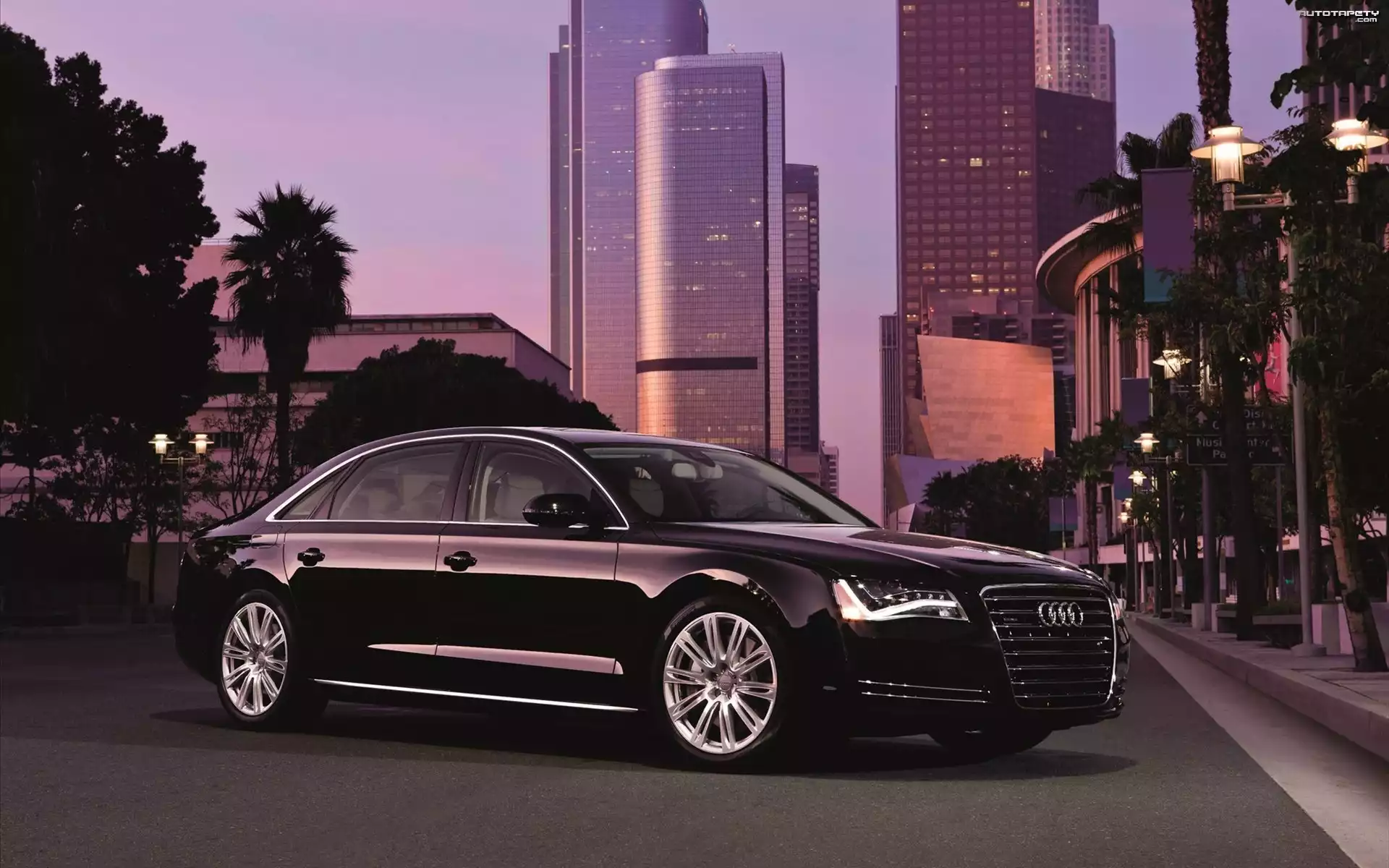 Auto Audi, A8, Miasto, Droga, Wierzowce - Tapeta