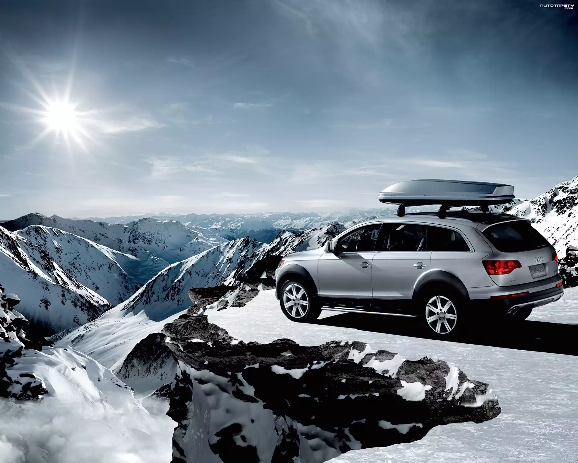 Auto Audi Q7, Góry, Słońce - Tapeta