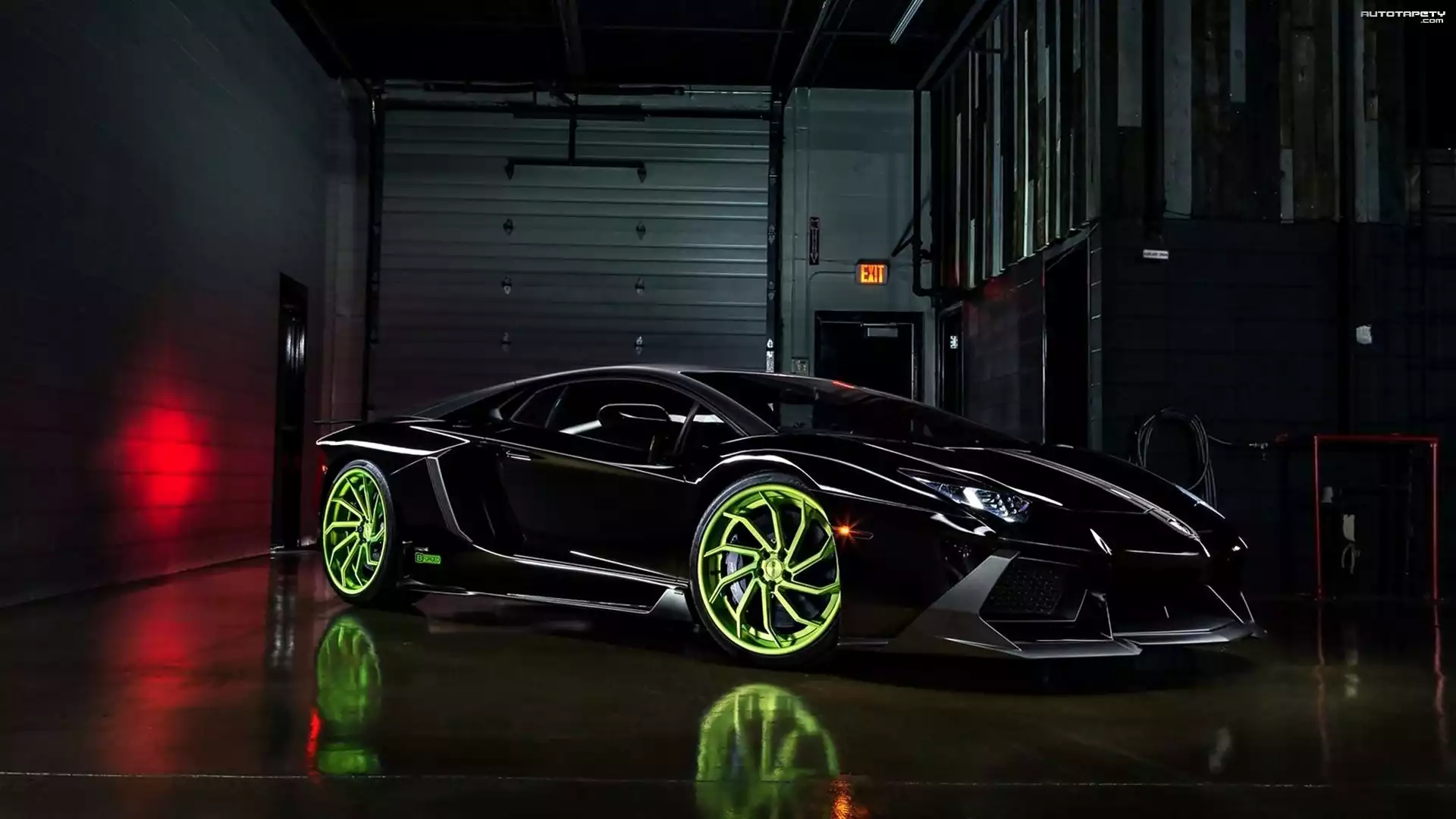 Auto Lamborghini, Aventador, LP700-4, Czarny, Garaż, - Tapeta