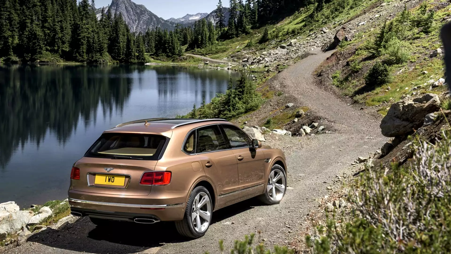 Auto Bentley Bentayga, Jezioro, Droga - Tapeta