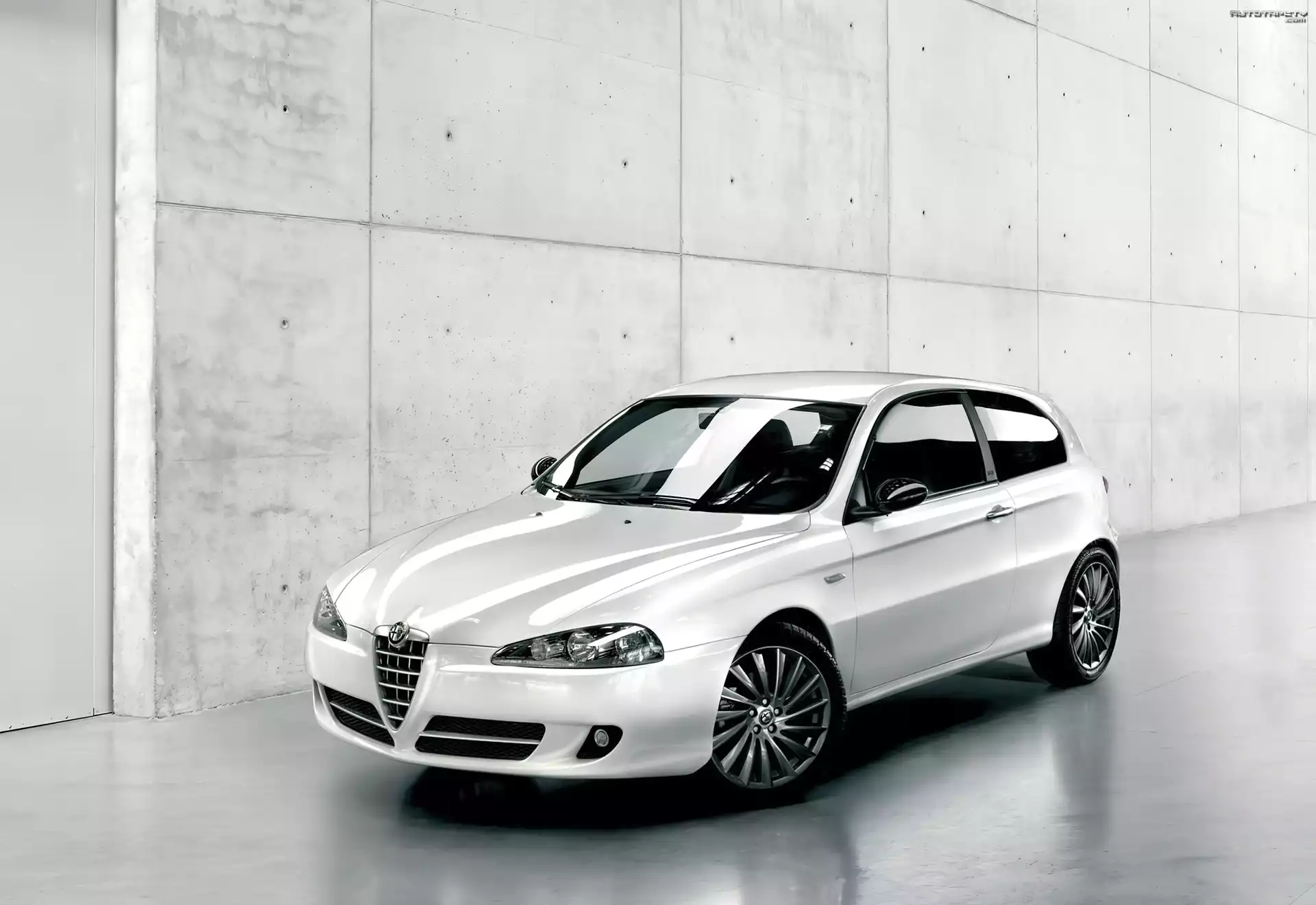 Auto Biała, Alfa Romeo, 147, Garaż - Tapeta