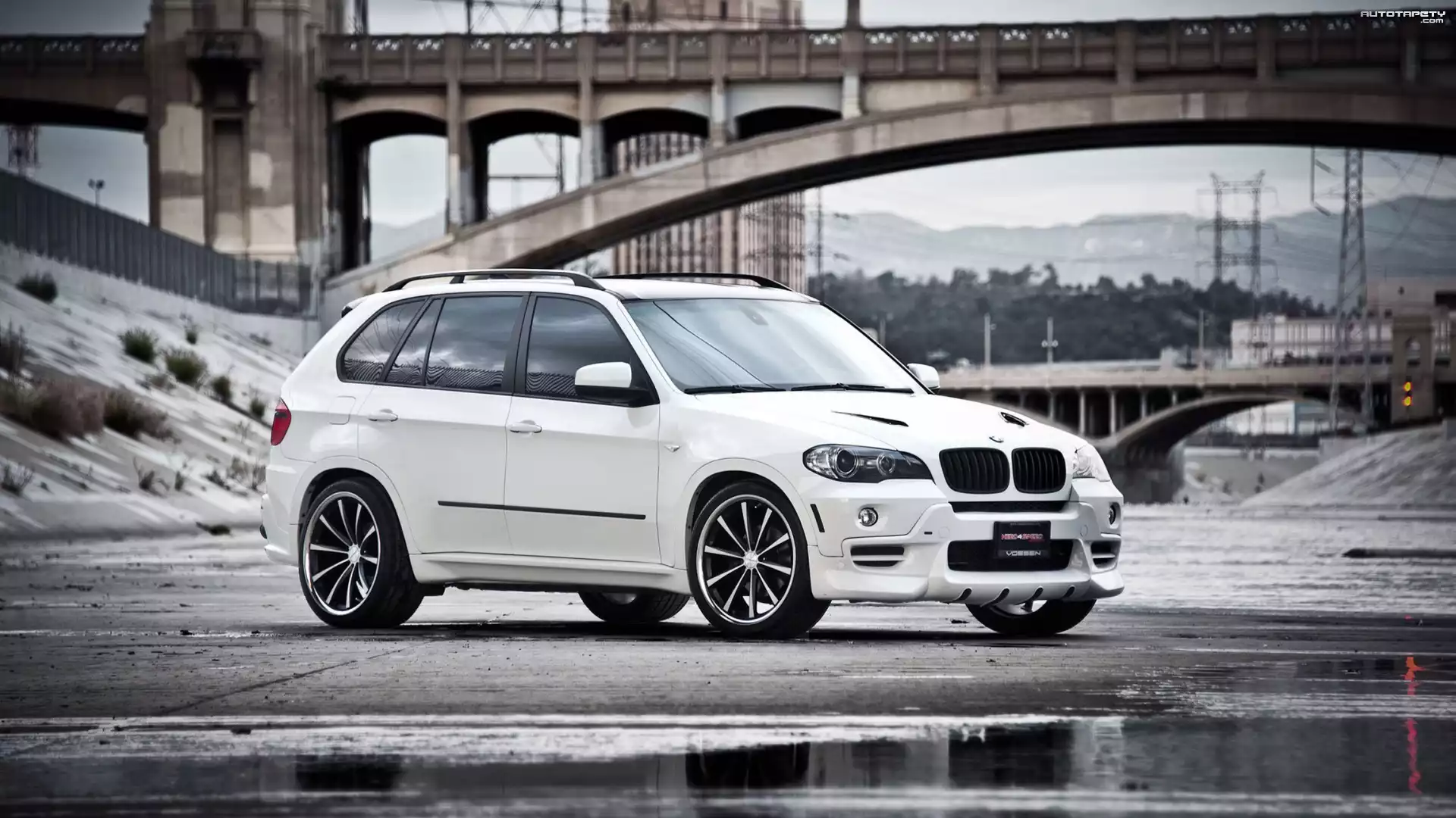 Auto Białe, BMW X5 E70, Most - Tapeta
