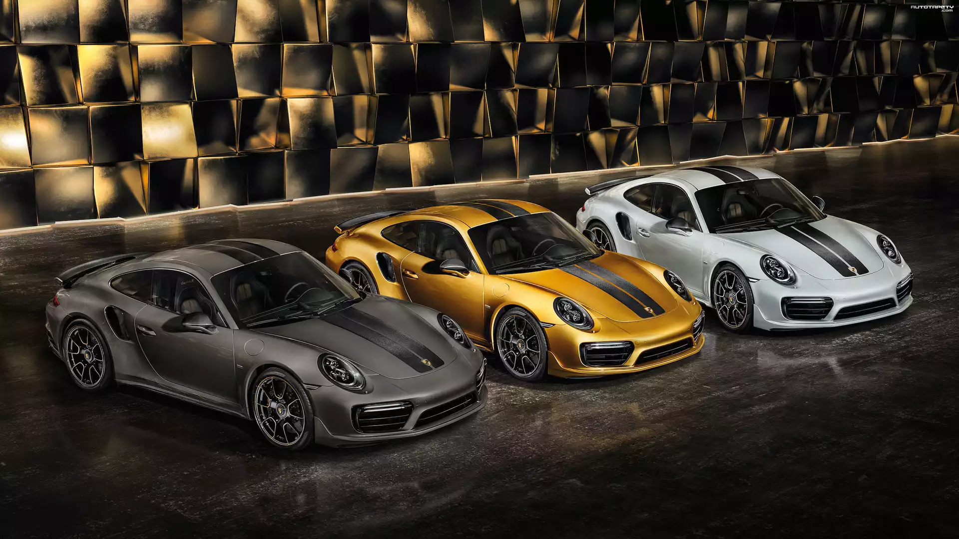 Auto: Trzy, Porsche 911 Turbo S Exclusive, Czarny, Złoty, Biały