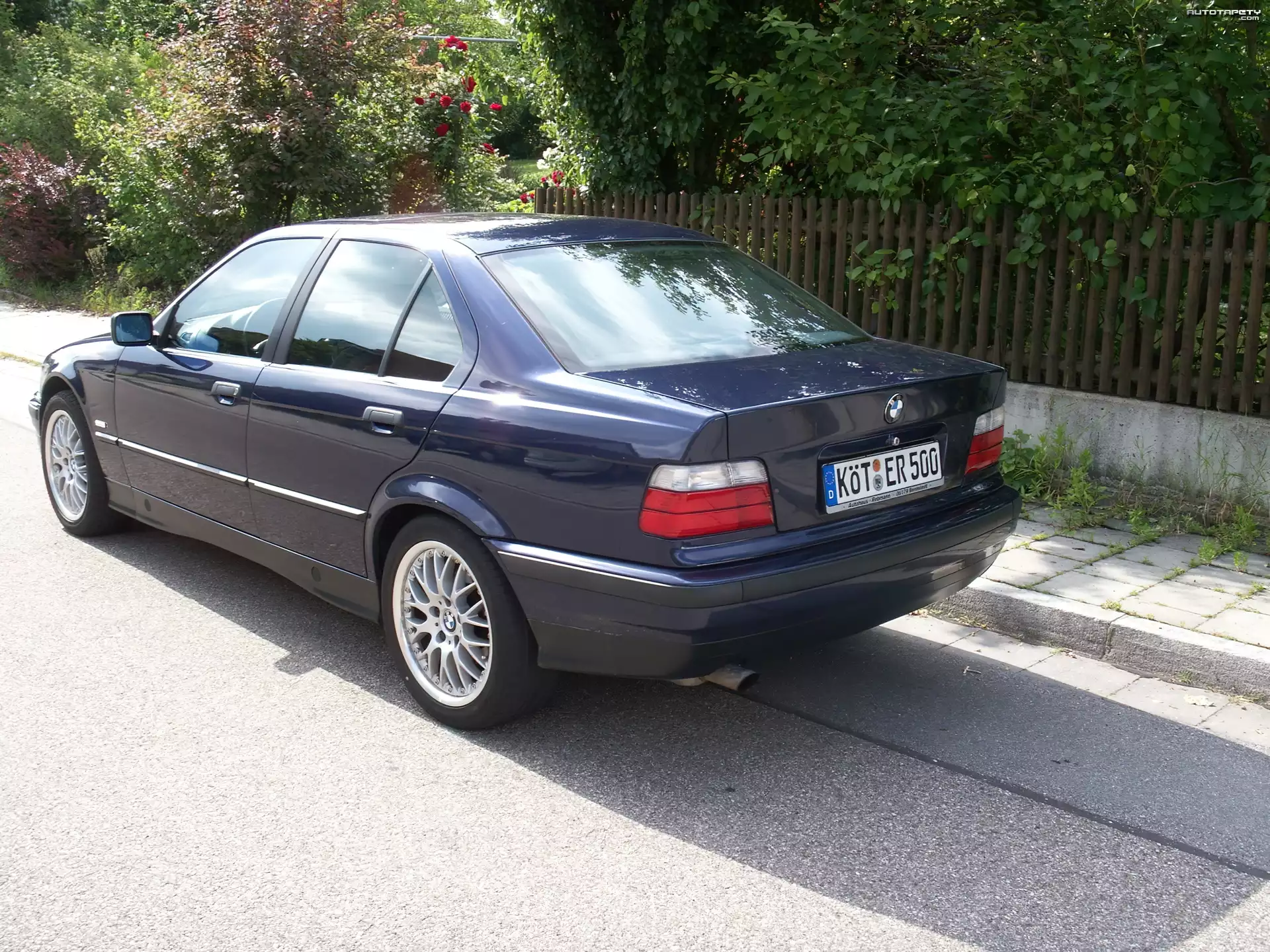 Auto Granatowy, BMW 3, E36, Widok, Lewy, Tył - Tapeta