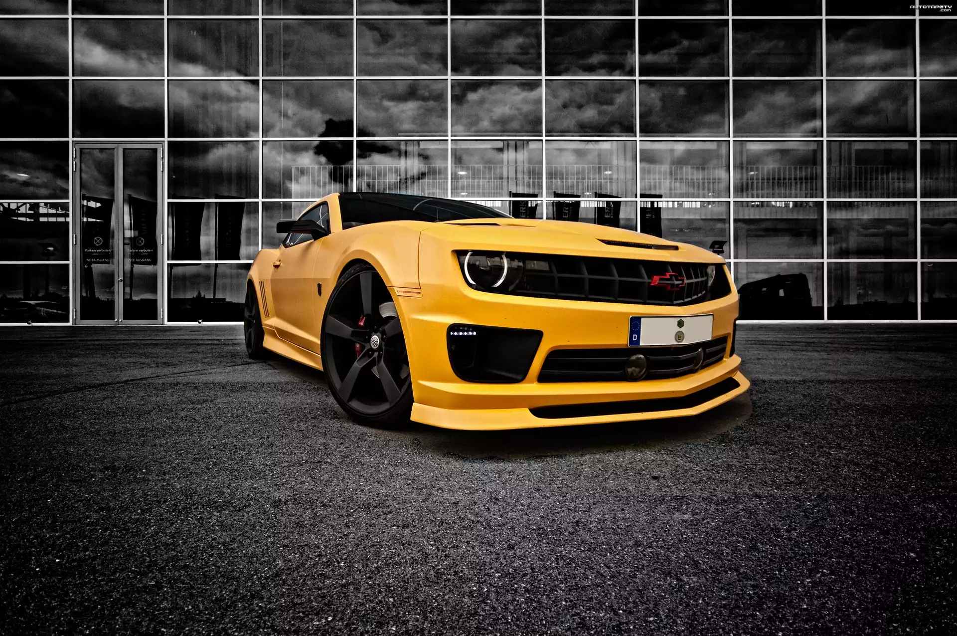 Auto Chevrolet Camaro, Żółty, Plac, Oszklenie - Tapeta