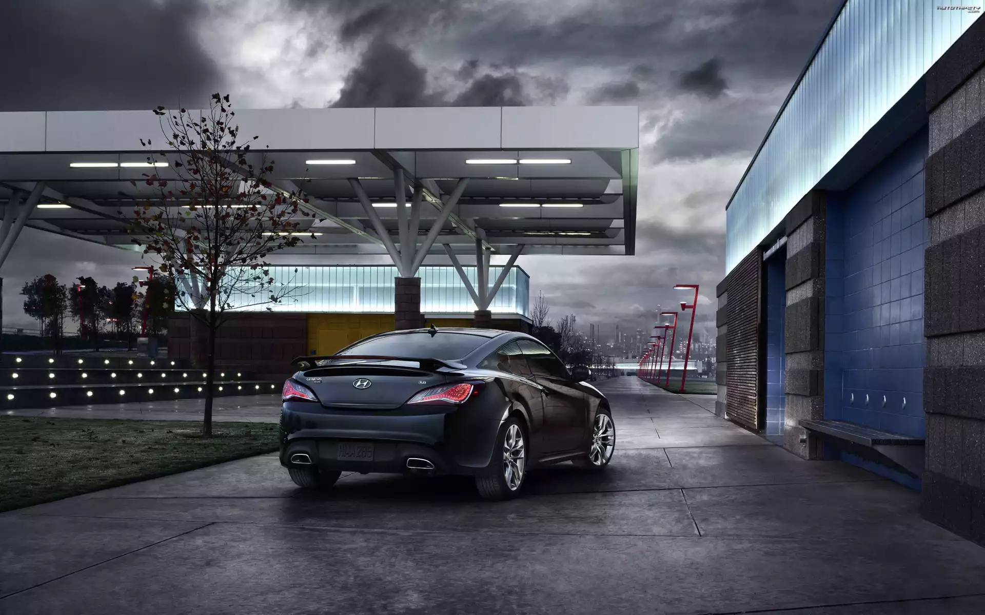 Auto Ciemny, Hyundai Genesis Coupe, Budynki - Tapeta