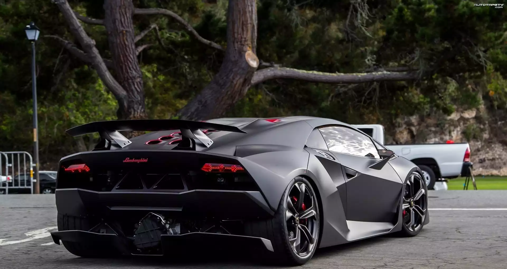 Auto: Czarne, Lamborghini, Sesto Elemento, Ulica, Drzewo