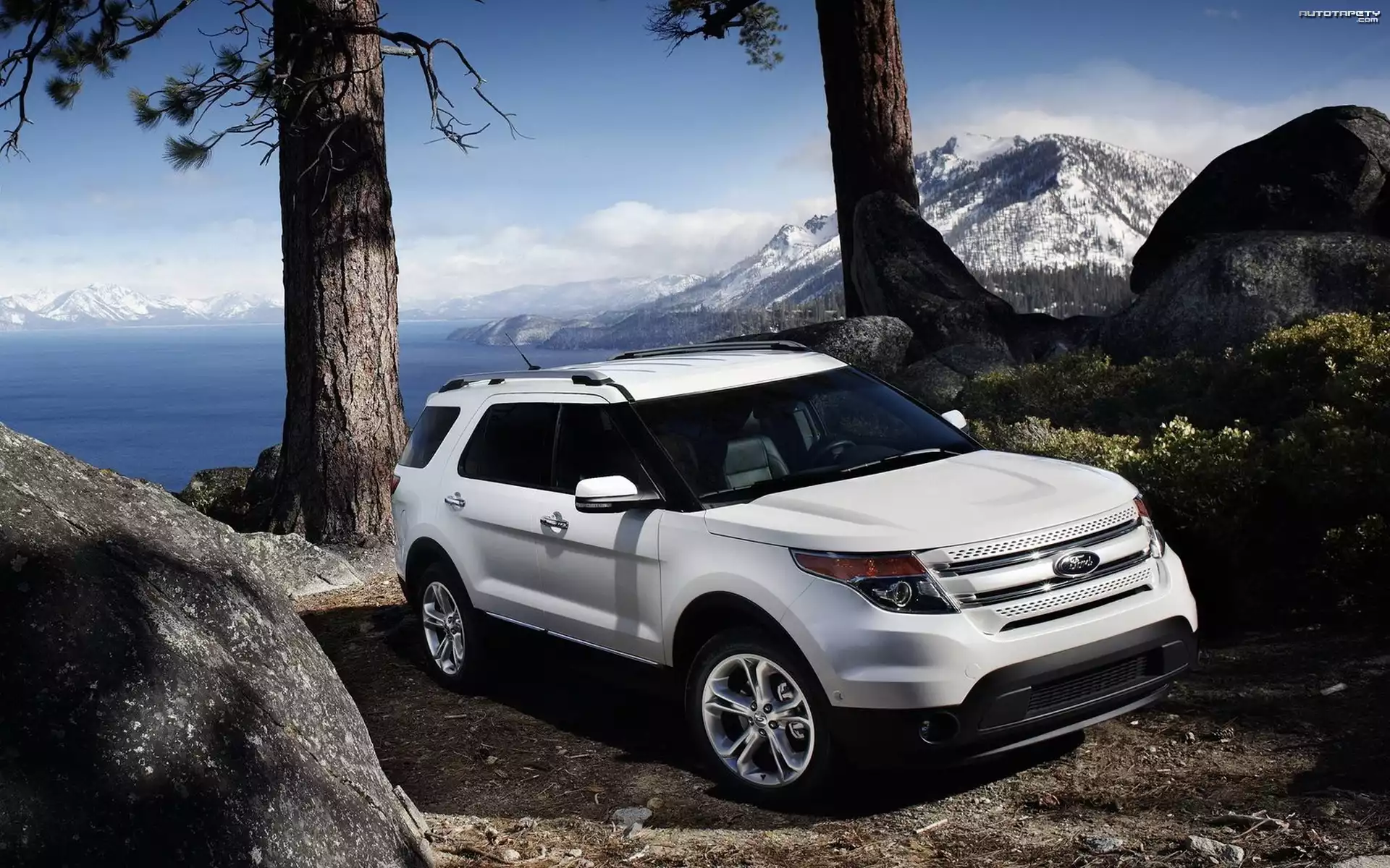 Auto Ford Explorer, Góry, Skały, Drzewa - Tapeta