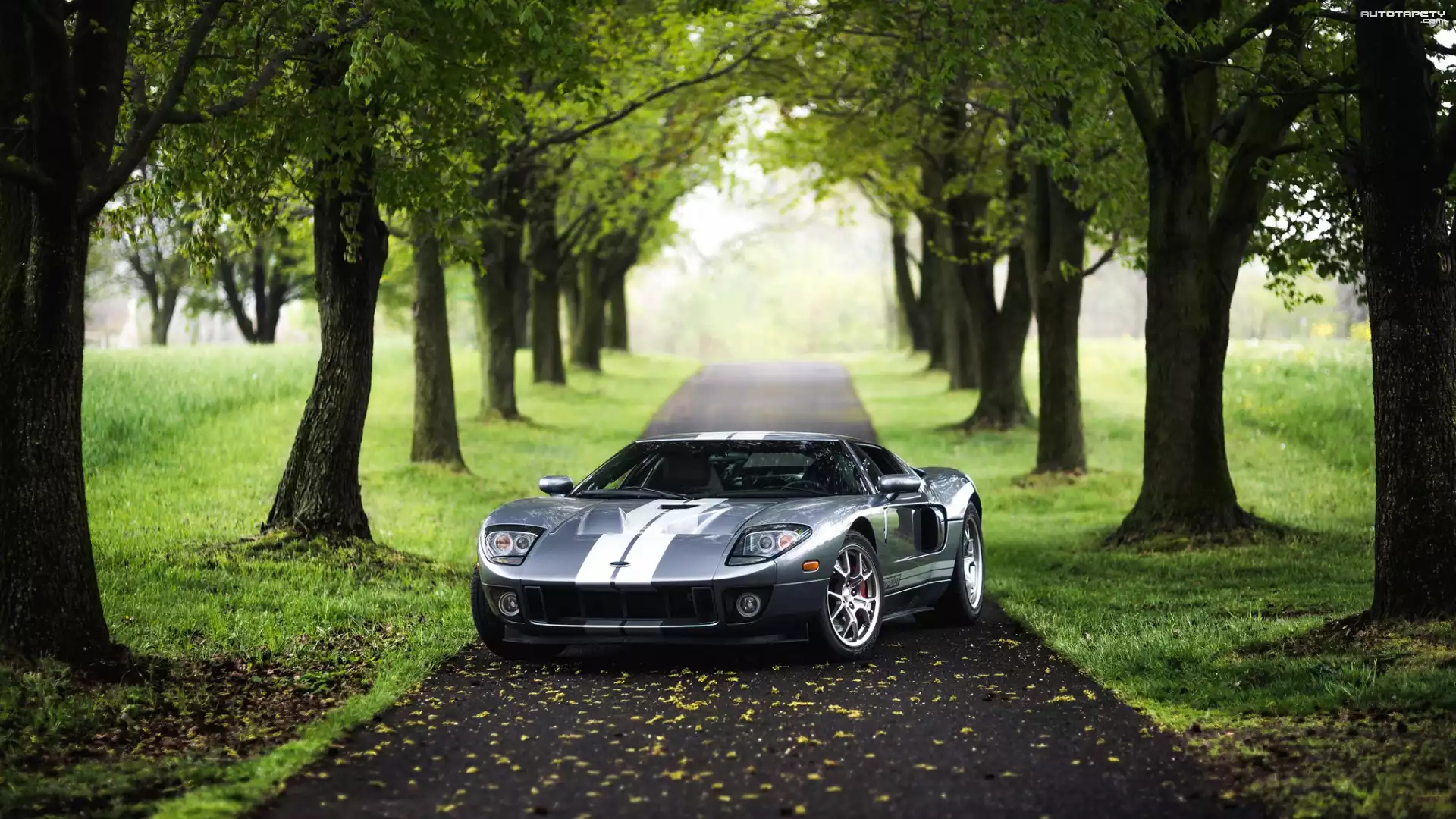 Auto Ford Mustang GT, Drzewa - Tapeta