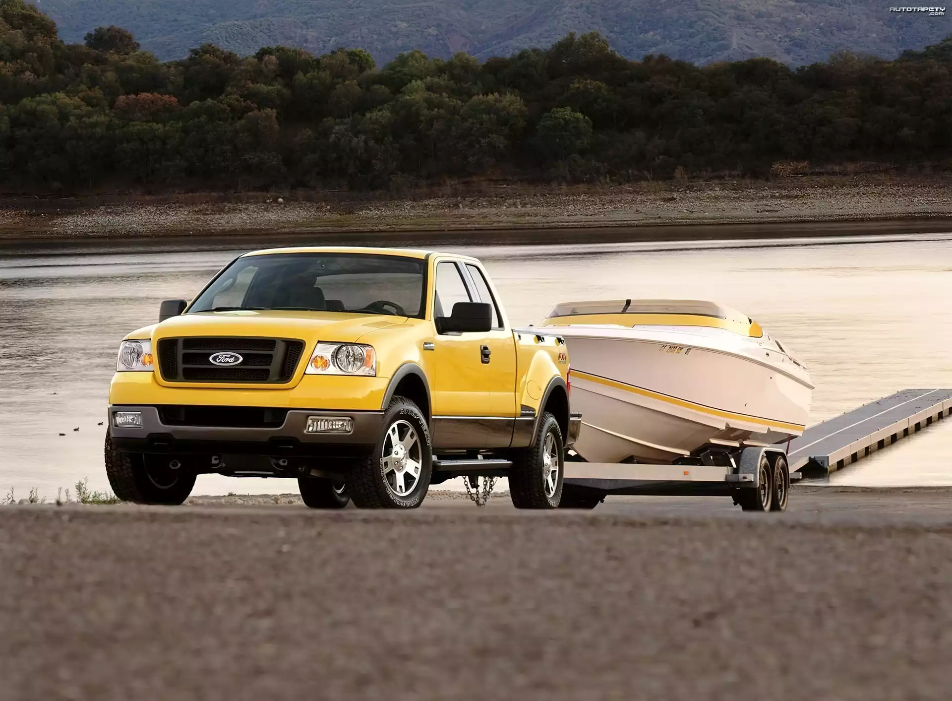 Auto Ford F 150, Przyczepa, Łódka - Tapeta