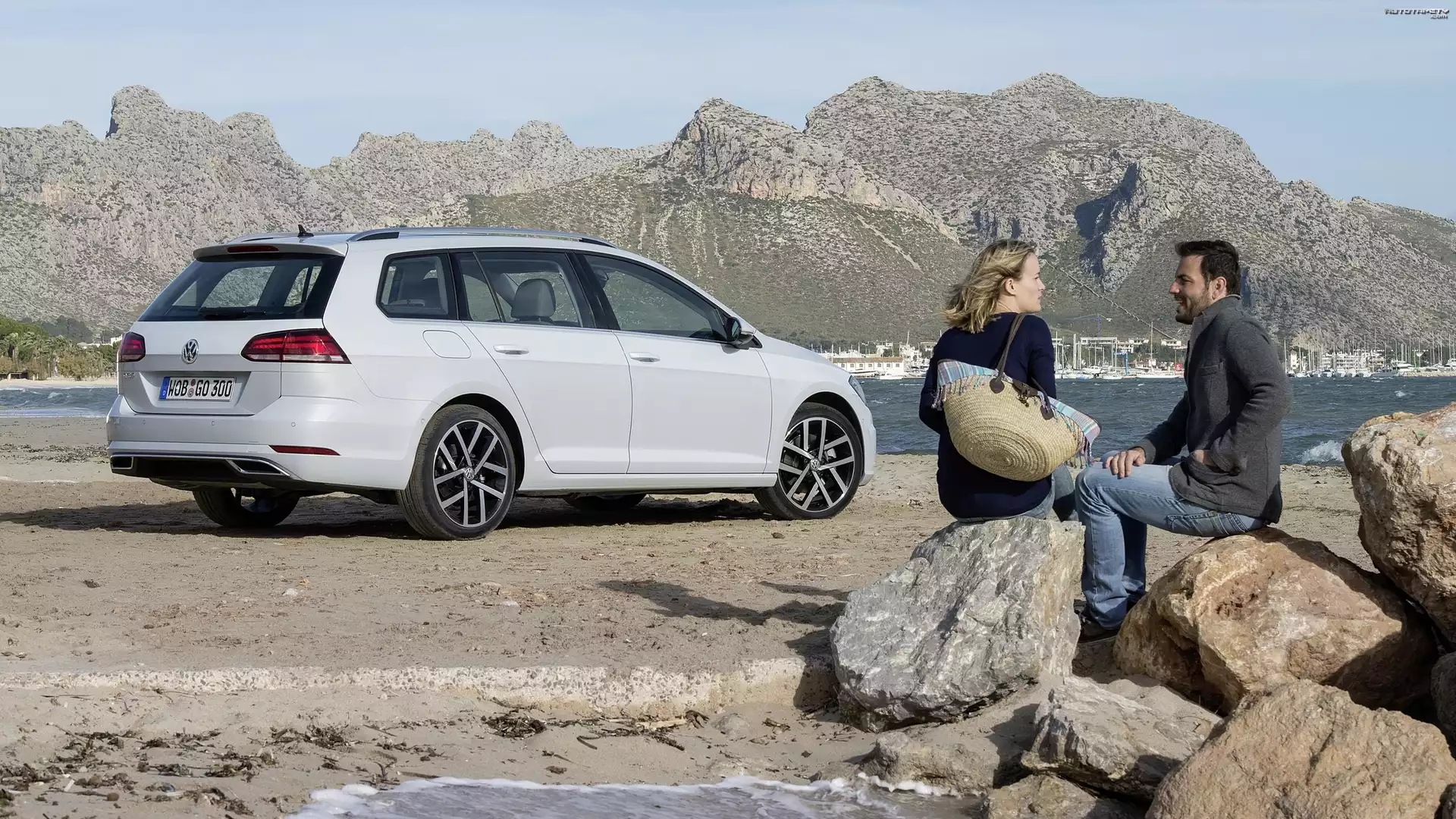 Auto Volkswagen Golf 7, Fecelift, 2017, Kobieta, Mężczyzna, Kamienie - Tapeta