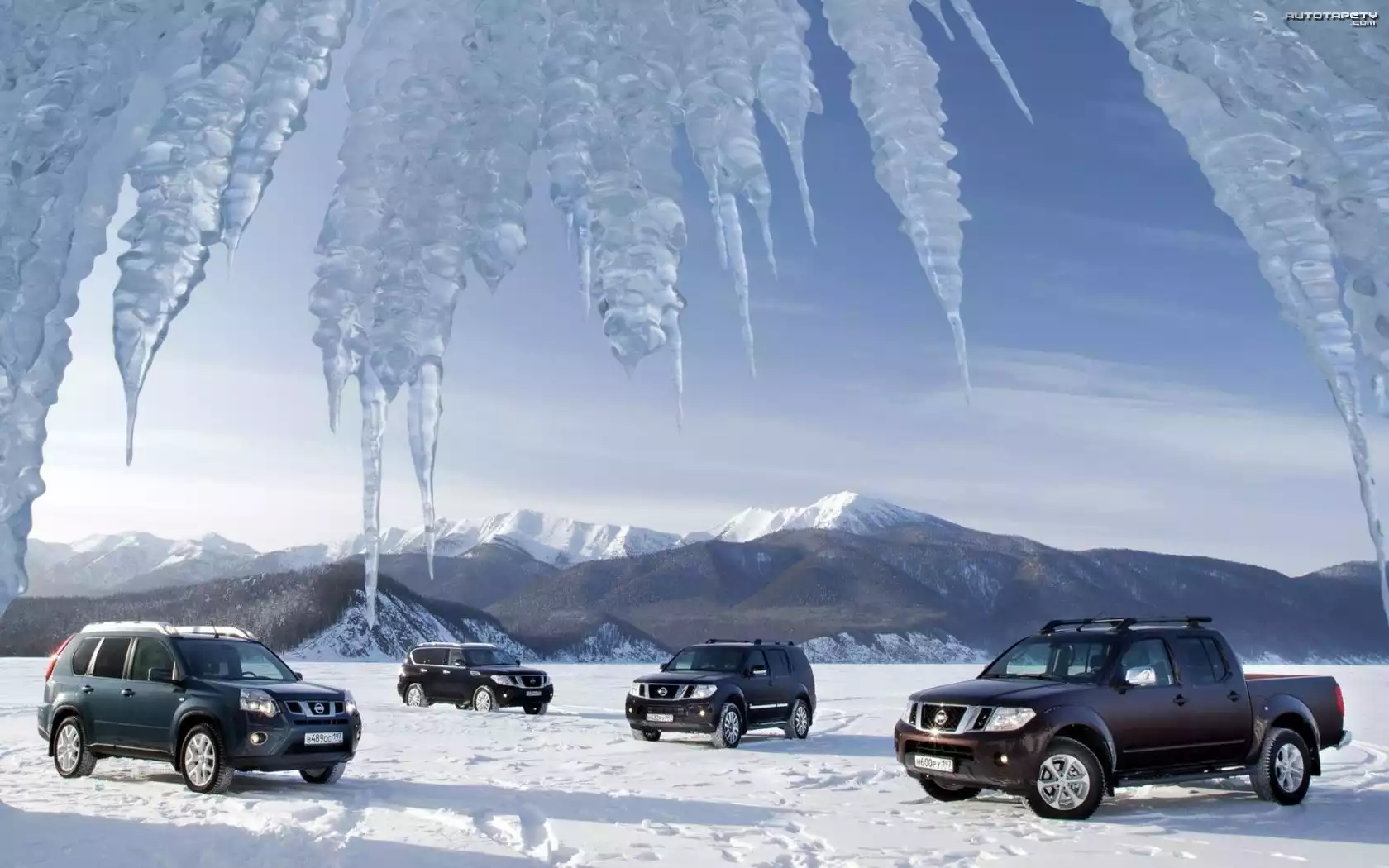 Auto Góry, Sople, Lodowe, Samochody, Nissan - Tapeta