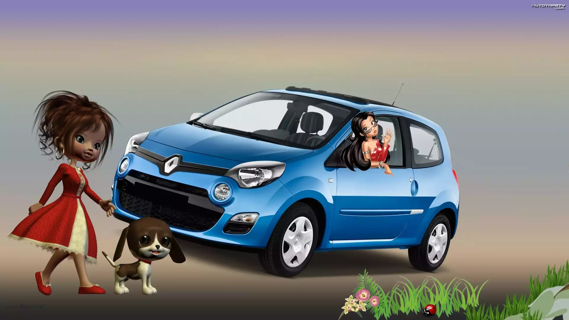 Auto Grafika, Samochód, Laleczki, Pies, Renault - Tapeta