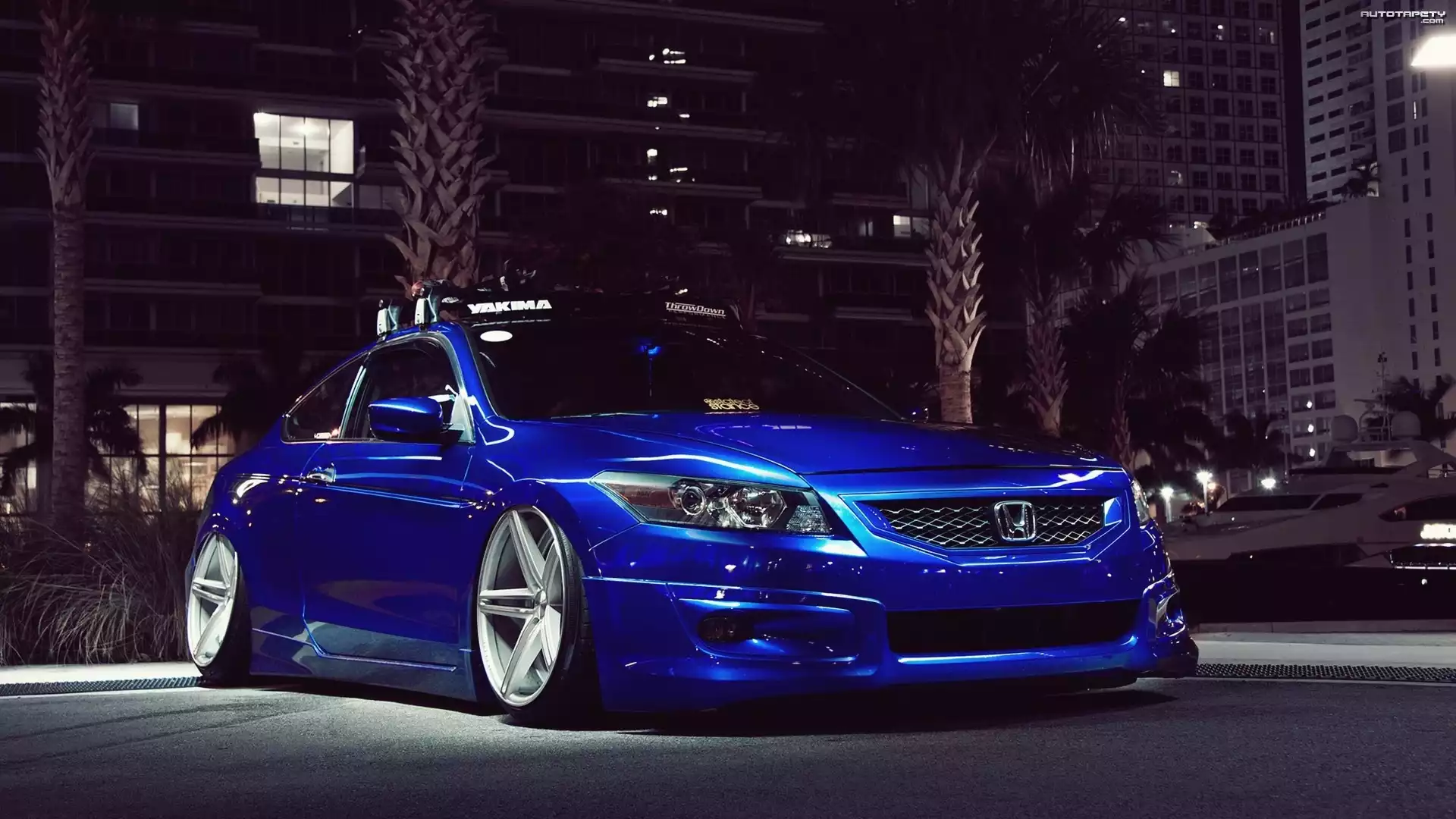 Auto Honda, Accord, Niebieska, Miasto, Noc, Felgi - Tapeta