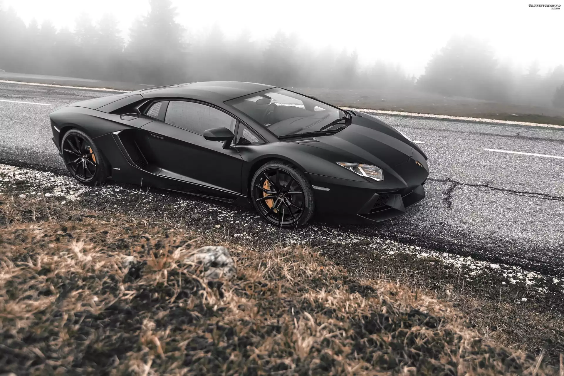 Auto Lamborghini, Adventador, Droga, Drzewa, Mgła - Tapeta