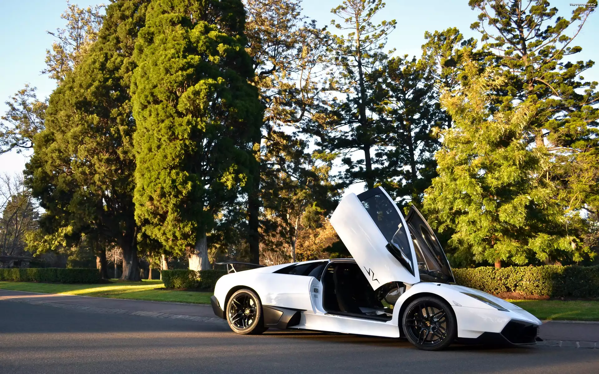 Auto Białe, Lamborgini, Murcielago, LP670-4SV, Ulica, Park - Tapeta