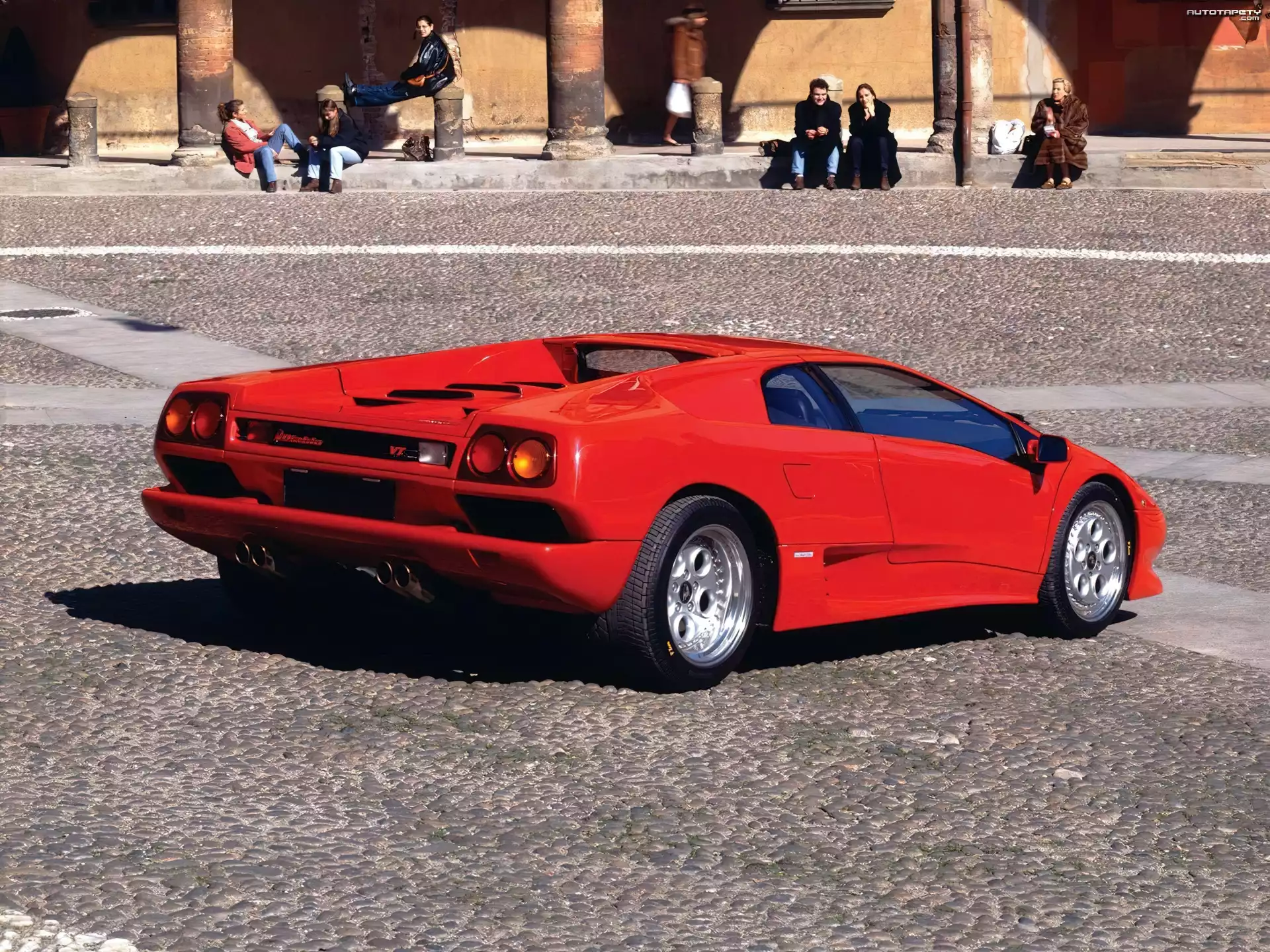 Profil, Lamborghini Diablo Lamborghini Diablo, Spojler, Zderzak Pomarańczowy, Lamborghini Diablo VT Lamborghini Diablo, Rura, Wydechowa Lamborghini Diablo, Plac, Kostka, Brukowa Super, Samochód, Lamborghini Diablo Lamborghini Diablo Millennium Puchar, Lamborghini Diablo Lamborghini Diablo, Podnoszone, Lampy Pomarańczowe, Lamborghini, Diablo Lamborghini Diablo, VT 6.0