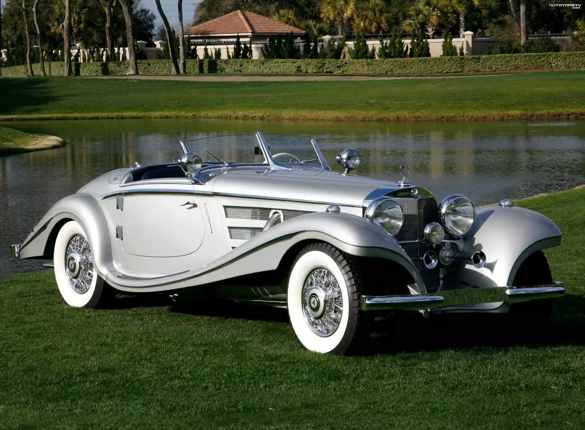 Auto Mercedes Benz 500K, Srebrny, Kabriolet - Tapeta