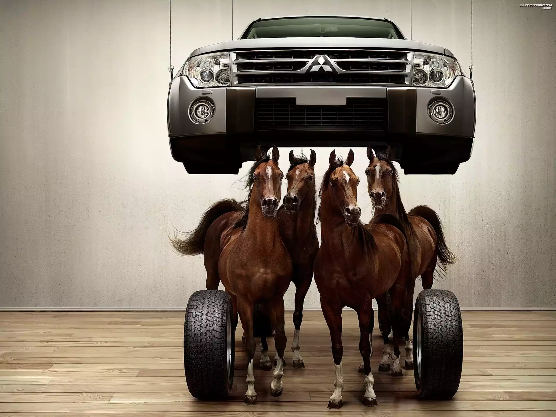 Auto Konie, Mitsubishi Pajero - Tapeta