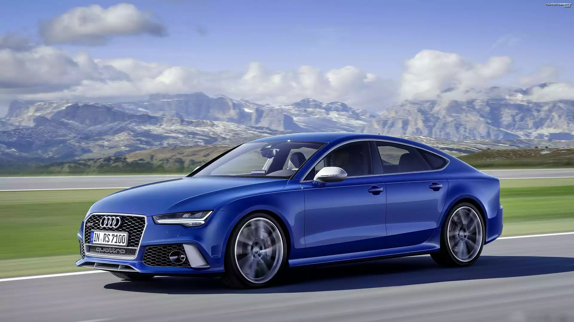 Auto Niebieskie, Audi, RS7, Droga, Góry - Tapeta