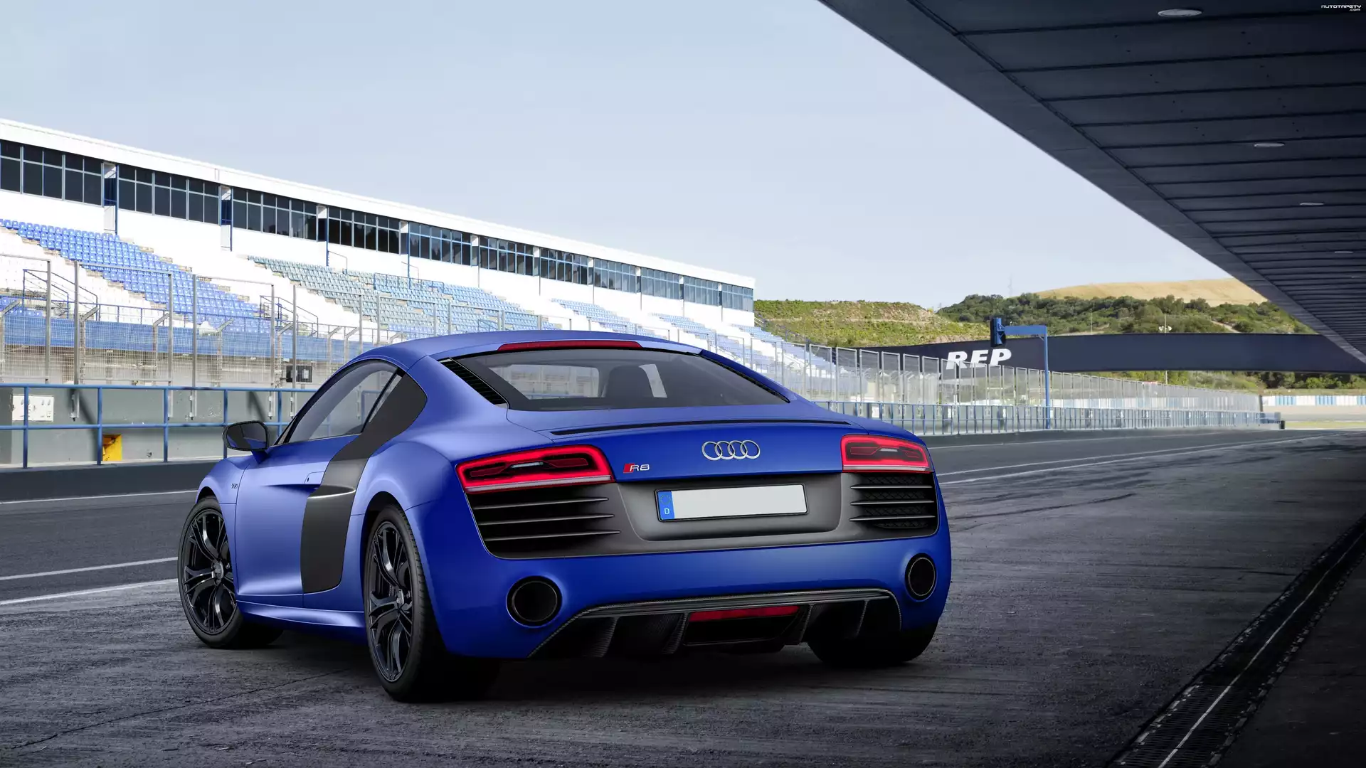 Auto Niebieskie, Audi R8, Tył, Tor wyścigowy - Tapeta