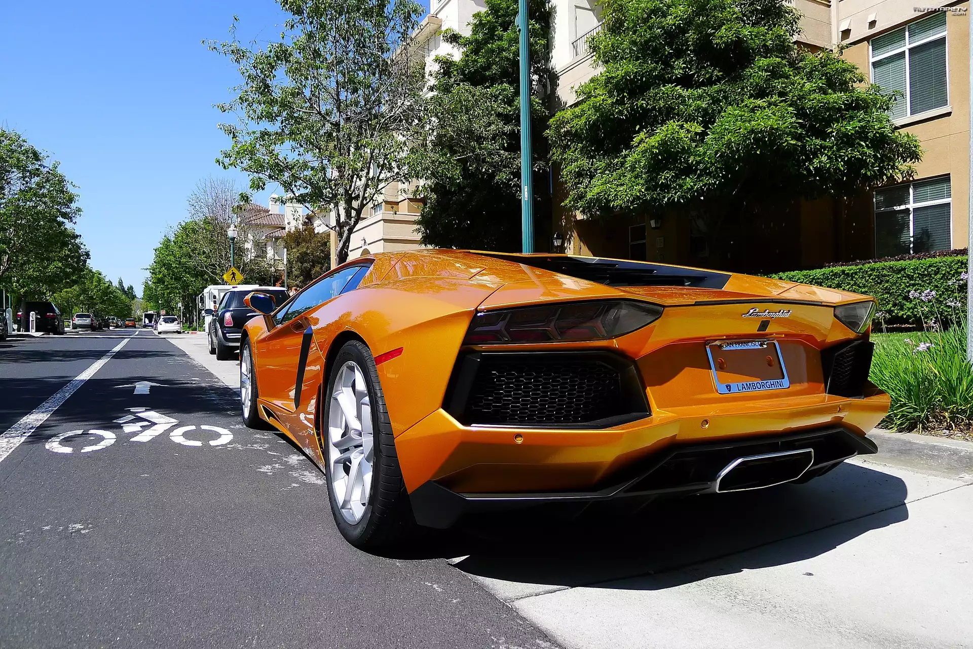 Auto: Żółty, Lamborghini Aventador LP700-4, Ulica