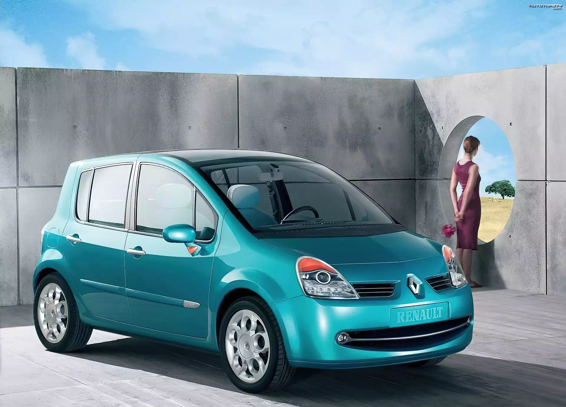 Auto Turkusowy, Renault Modus - Tapeta