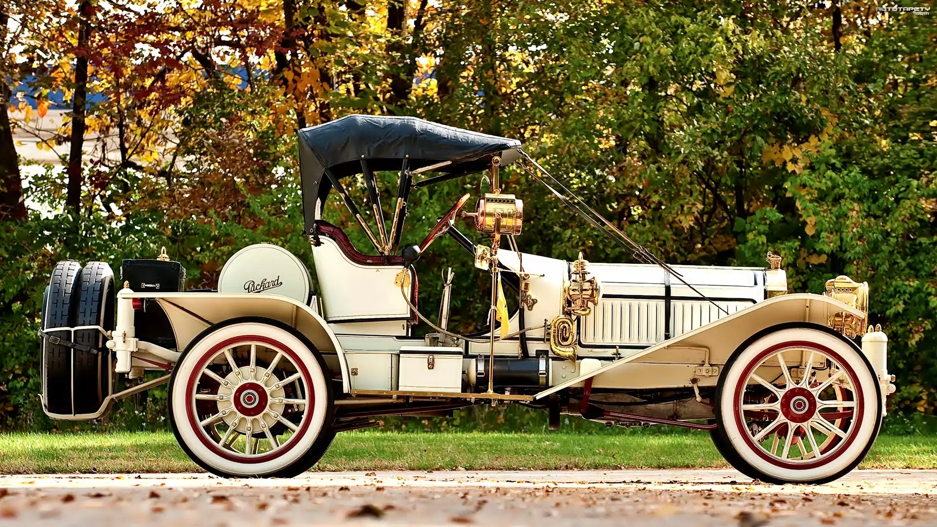 Auto Samochód, Zabytkowy, Packard, 1912, Drzewa - Tapeta