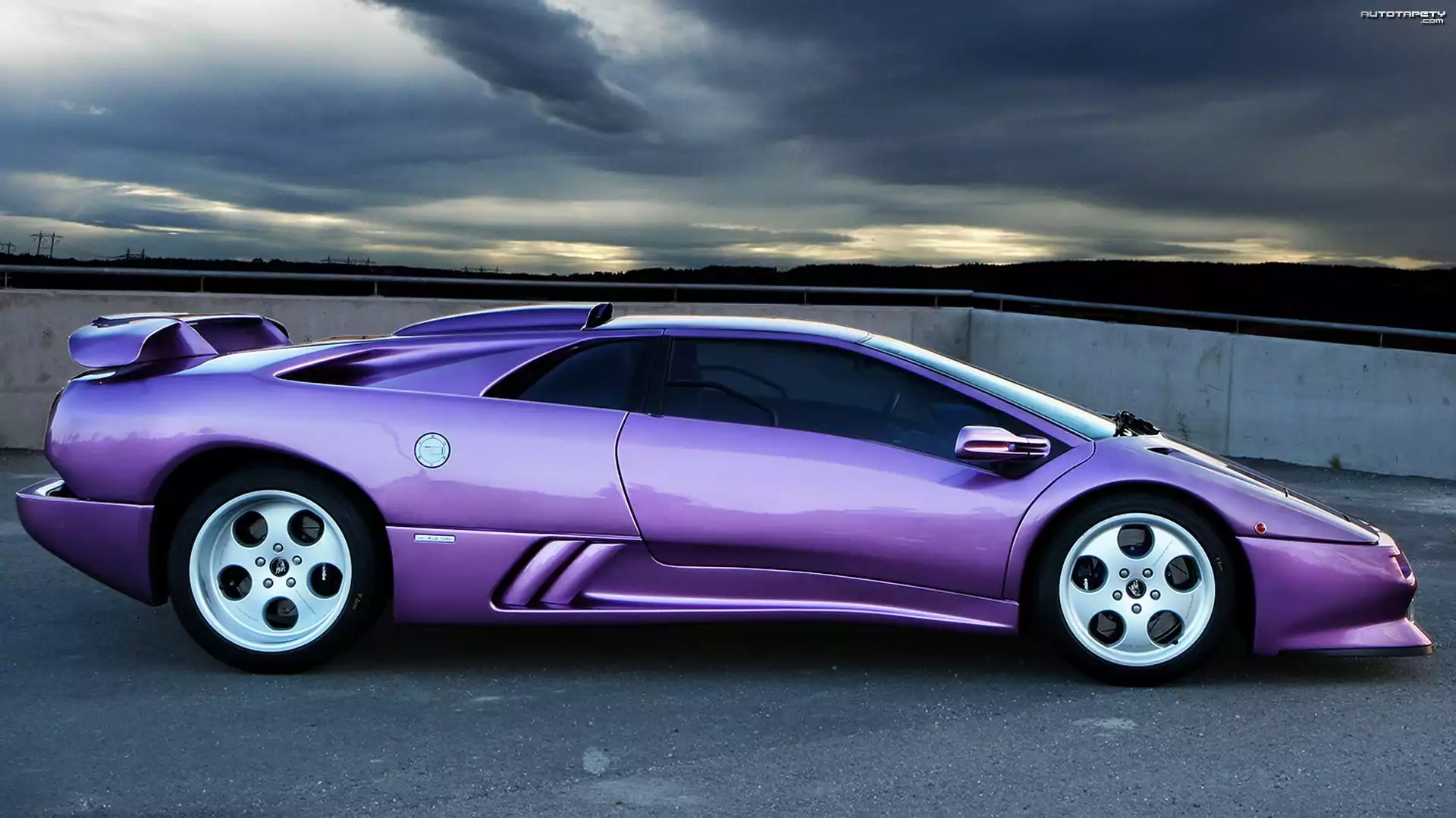 Auto: Fioletowy, Samochód, Lamborghini, Diablo, Niebo, Chmury