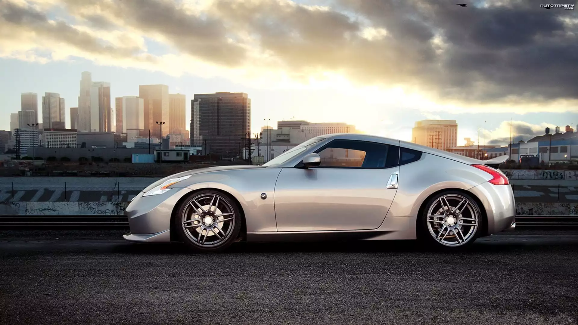 Auto Samochód, Srebrny, Nissan 370z, Miasto, Chmury - Tapeta
