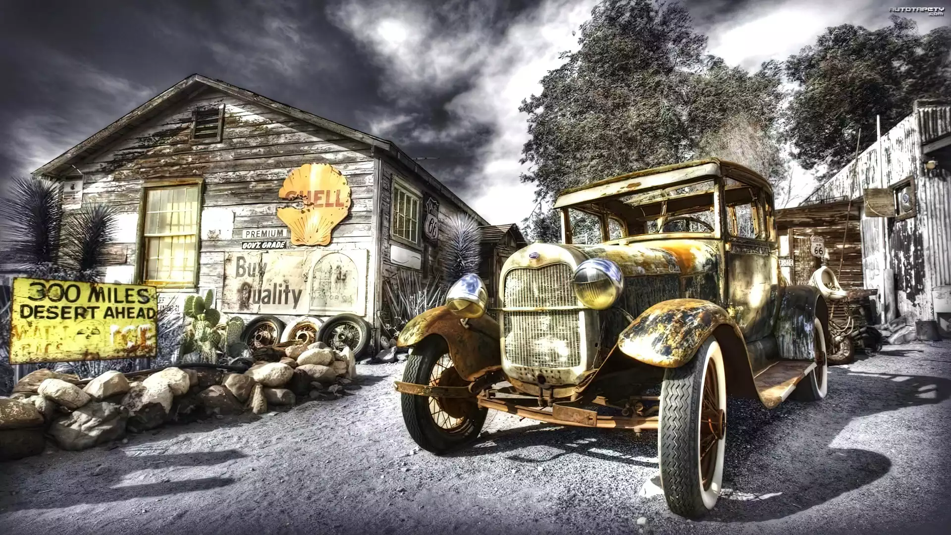 Auto Starodawny, Samochód, Zabudowania - Tapeta