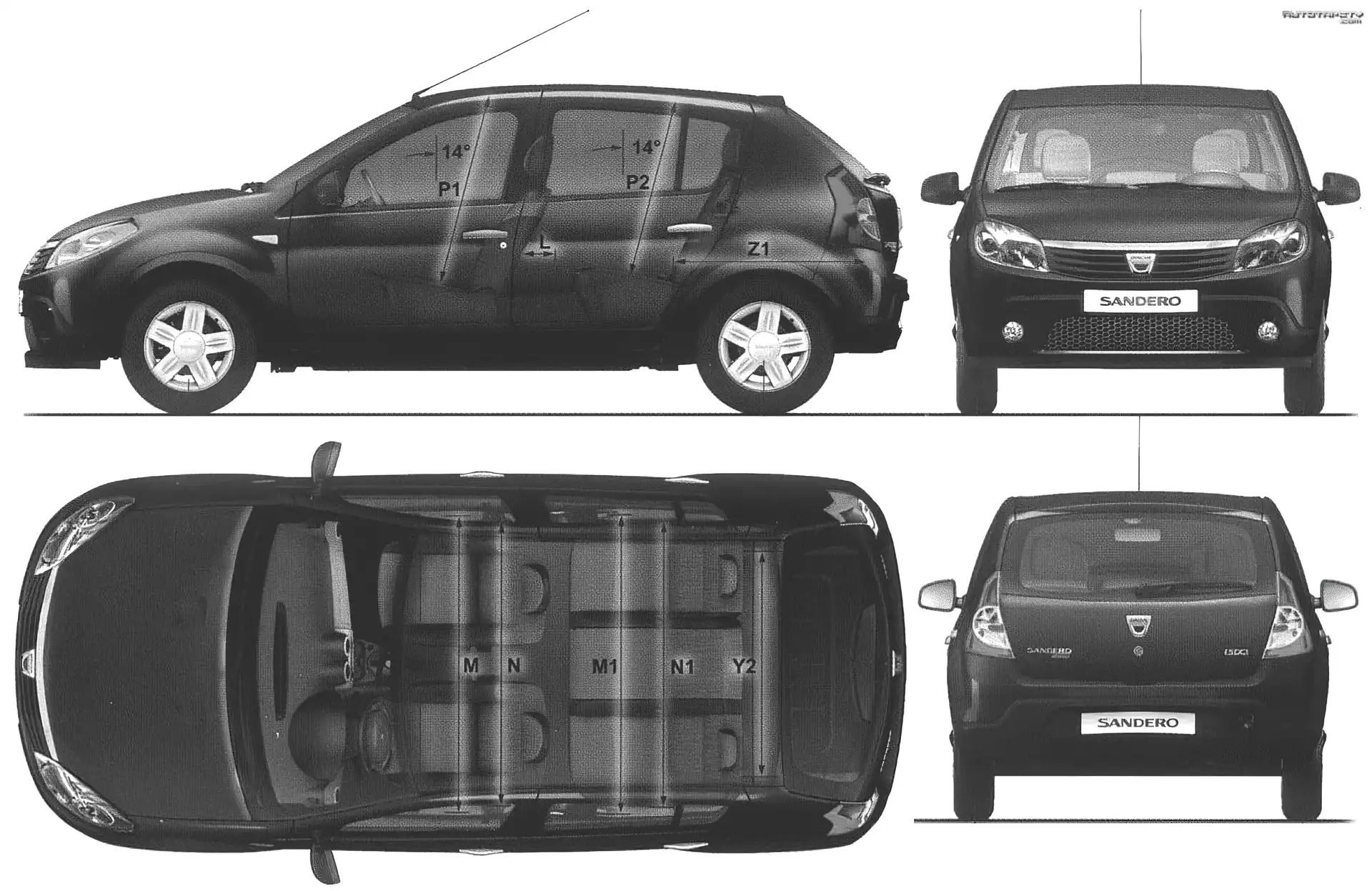 Auto Dacia Sandero, Wymiary - Tapeta