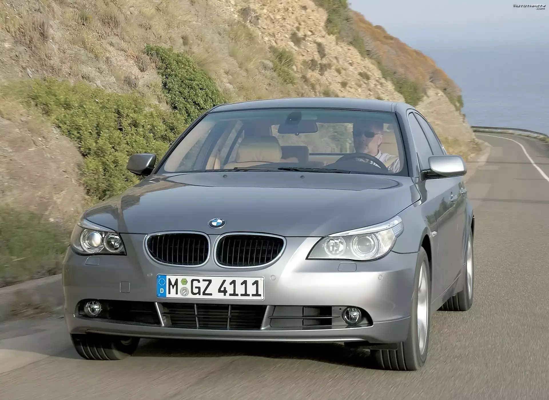 Auto Srebrne, BMW 5, E60, Góry, Droga - Tapeta
