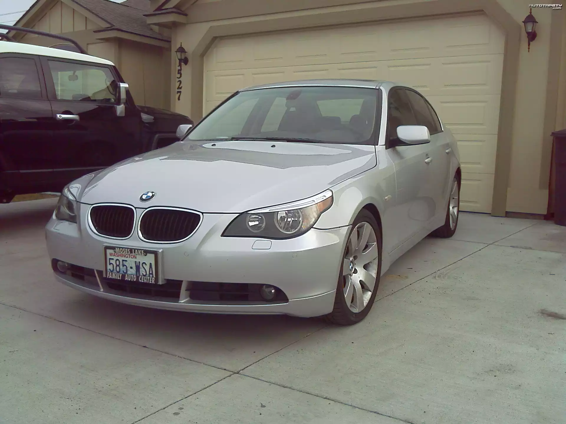Auto Srebrne, BMW 5, E60, Podjazd, Dom - Tapeta
