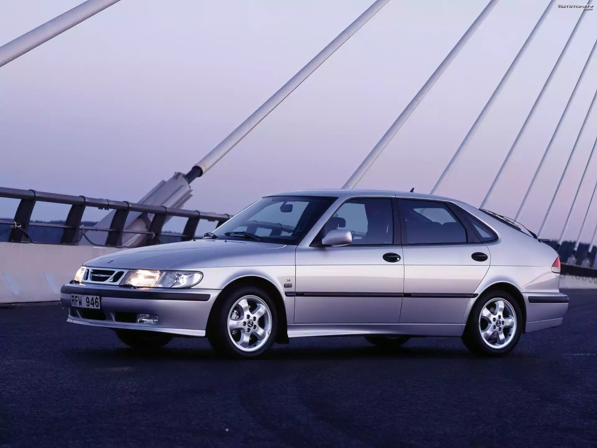 Auto Srebrny, Saab 9-3, Hatchback - Tapeta