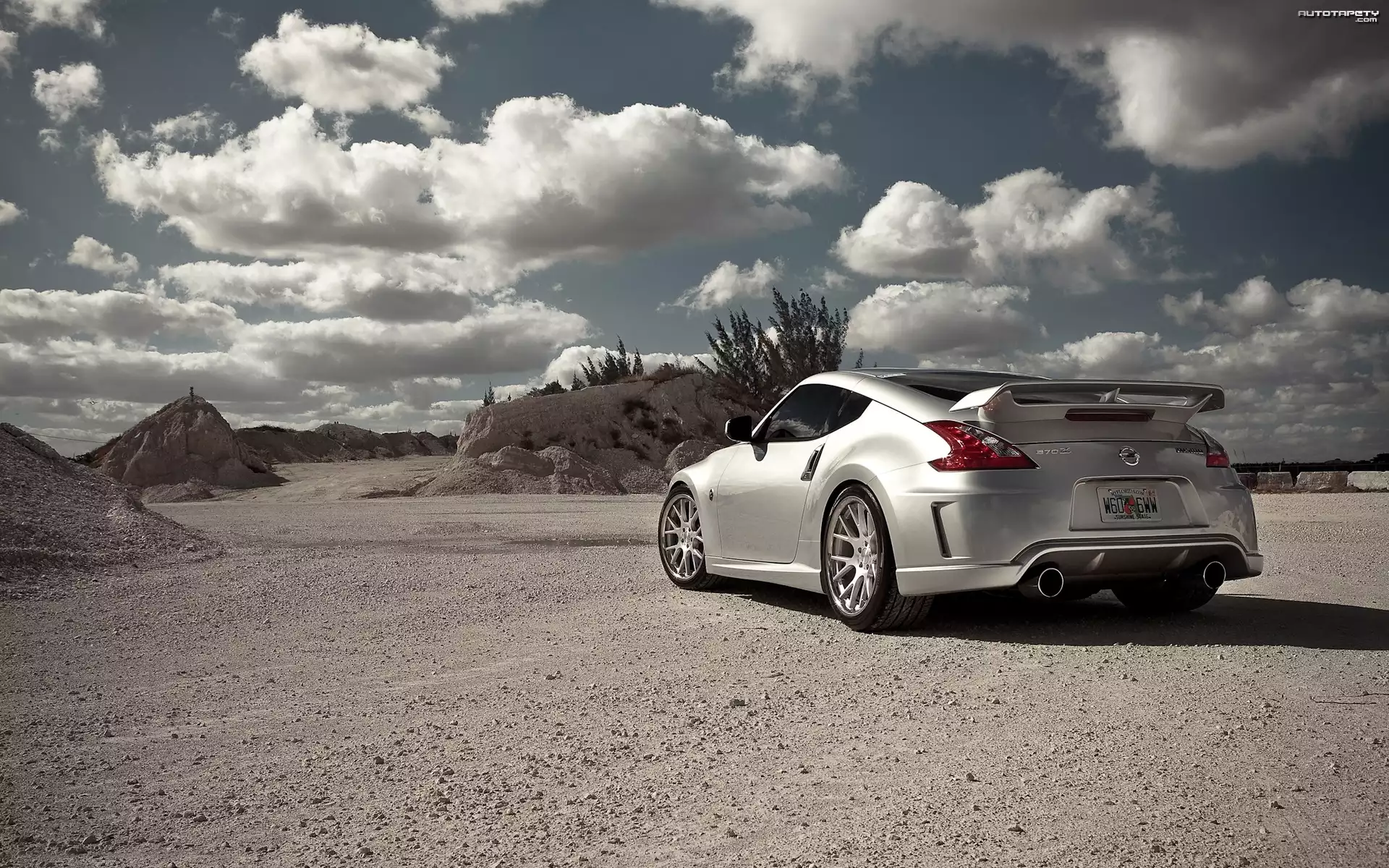 Auto Srebrny, Nissan 370Z, Chmury - Tapeta