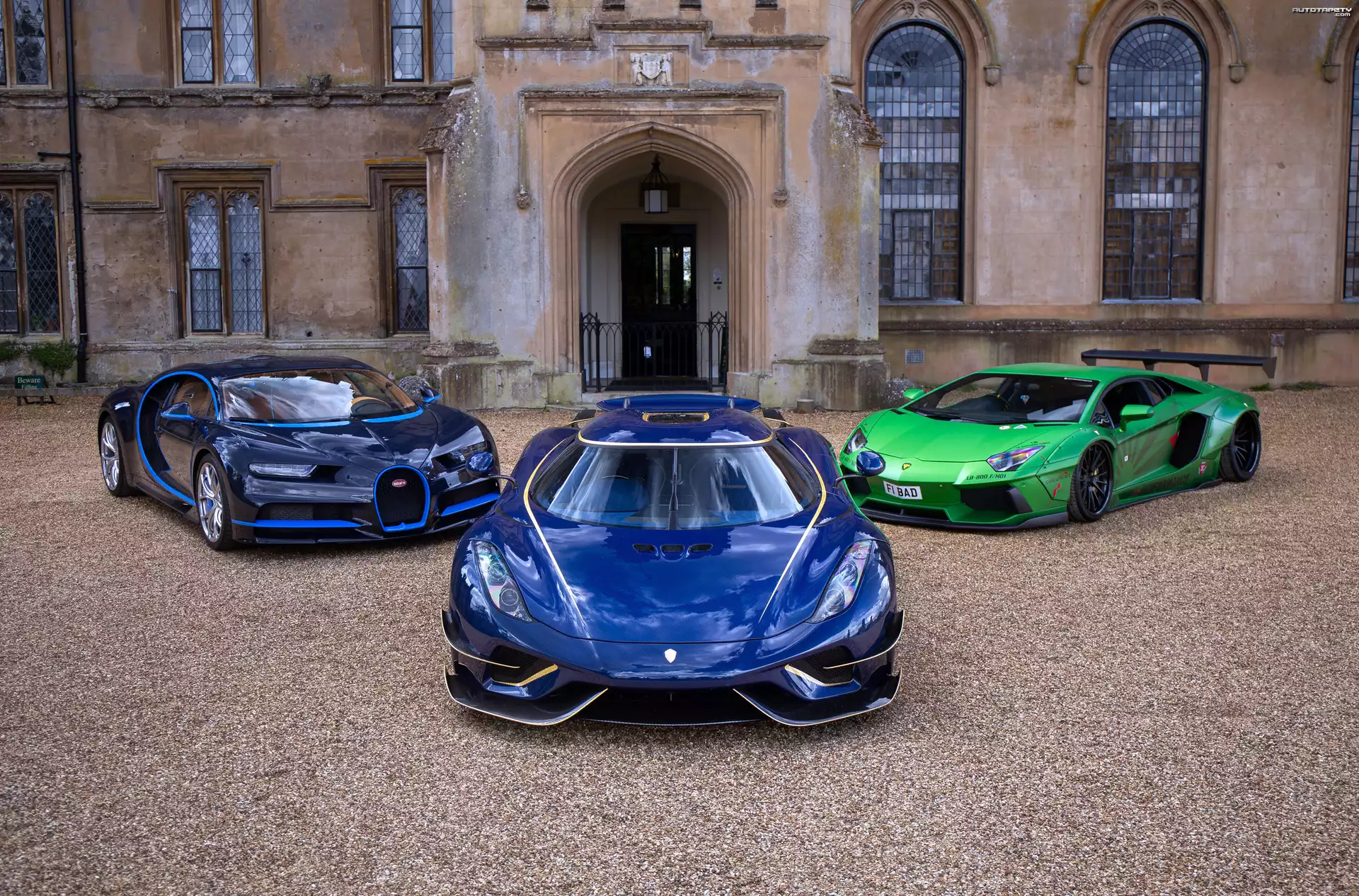 Auto Trzy, Samochody, Bugatti Chiron, Koenigsegg Regera, Lamborghini Aventador Liberty Walk - Tapeta |