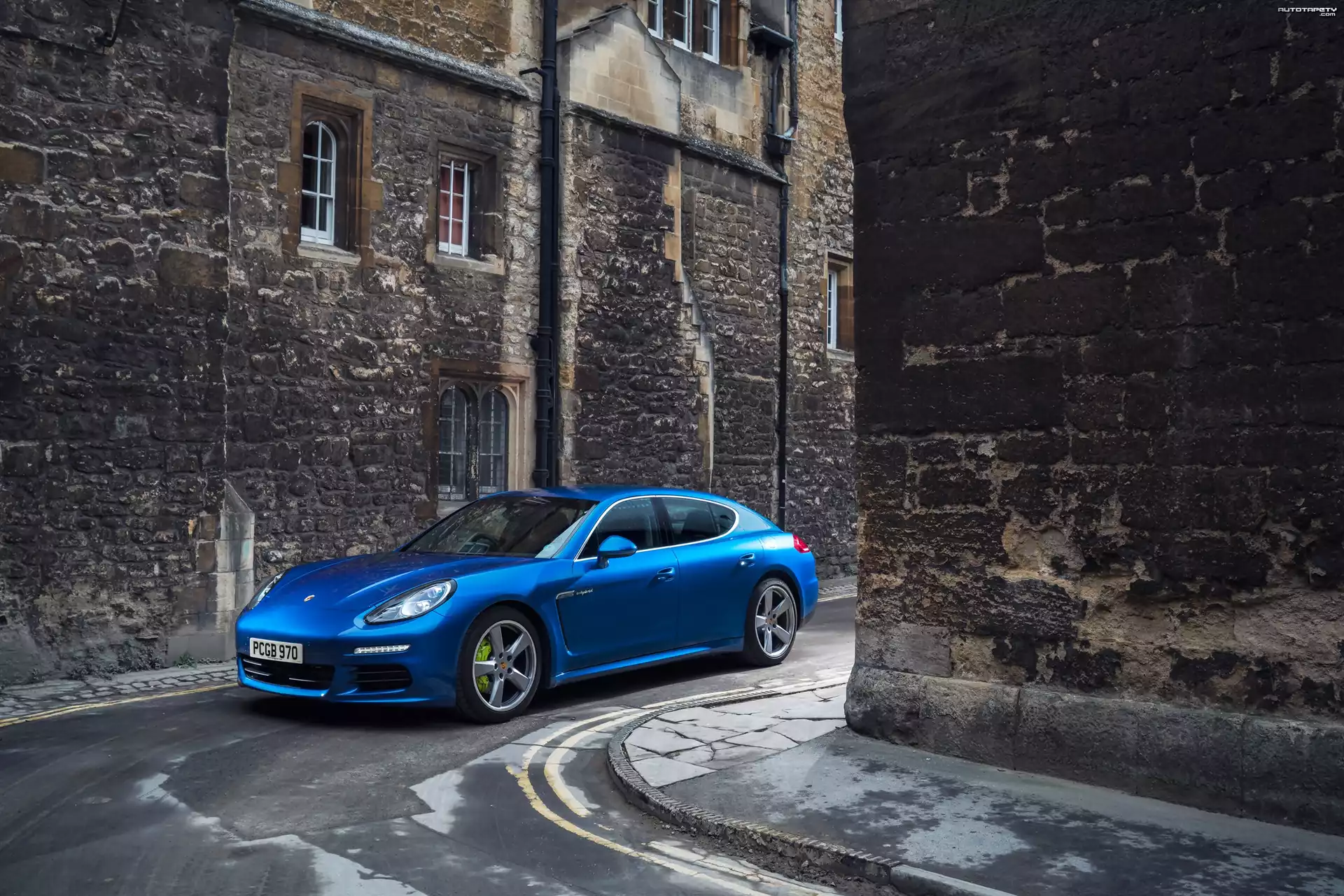 Auto Niebieskie, Porsche Panamera S E-Hybrid, 2013, Domy, Ulica - Tapeta