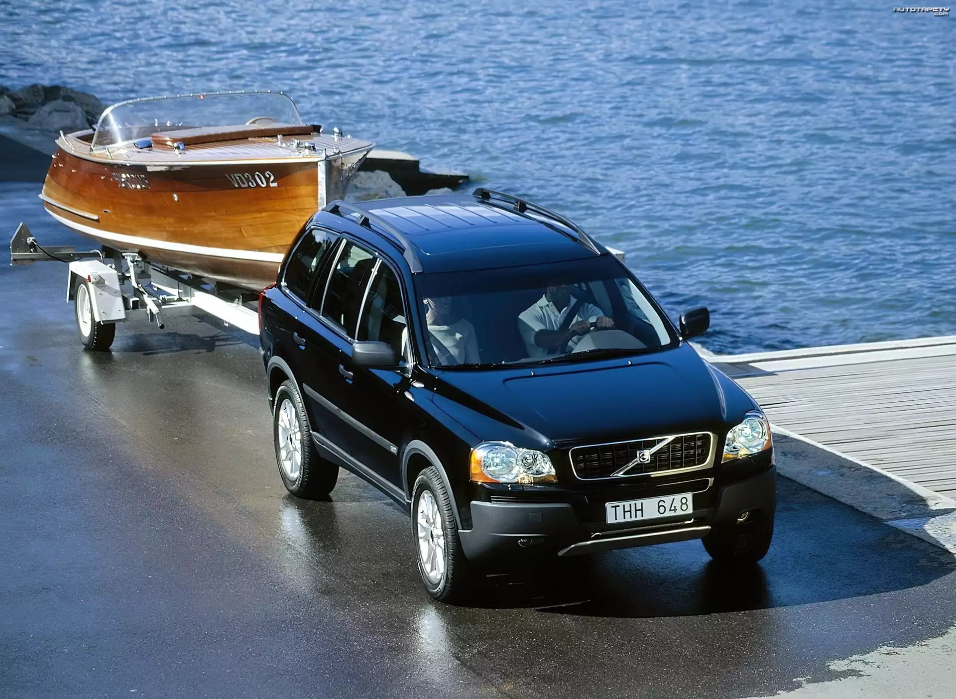Auto Volvo XC-90, Przyczepa, Motorówka - Tapeta
