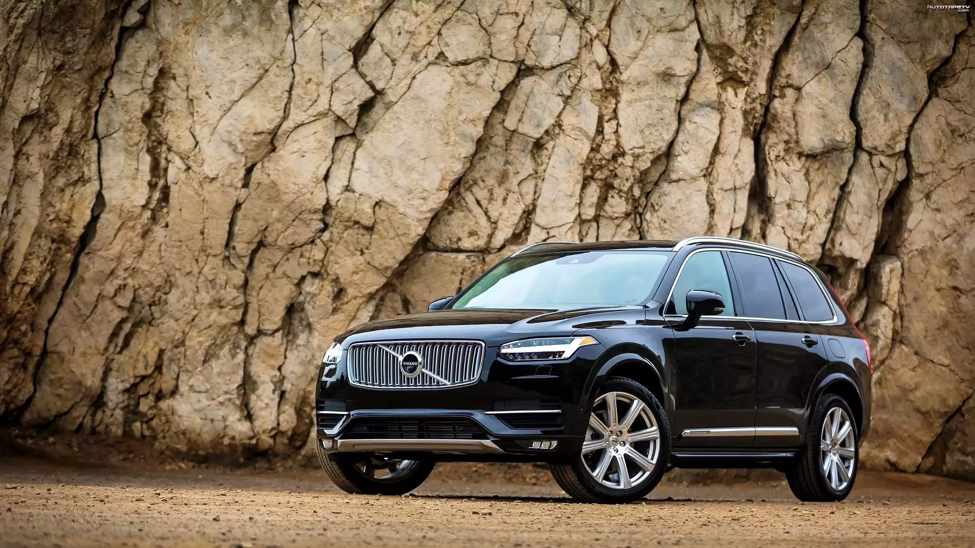 Auto Czarne, Volvo XC90 T8 Excellence Edition, 2016, Skały - Tapeta
