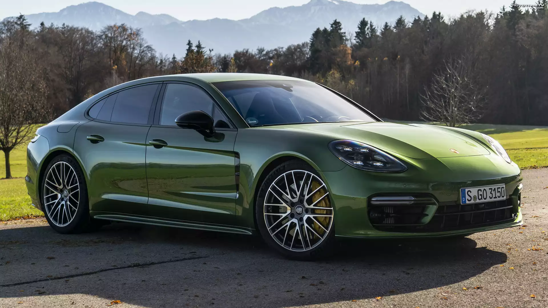 Auto Zielone, Porsche Panamera S, Bok - Tapeta